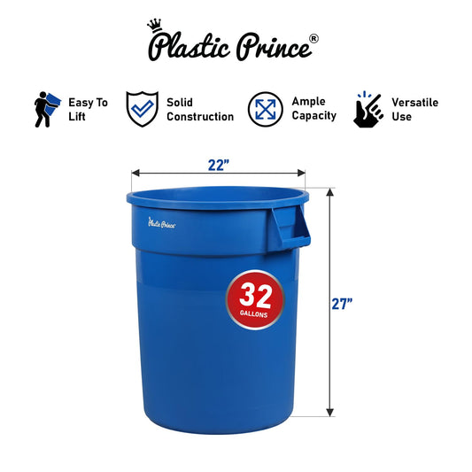 32-Gallon Blue Round Trash Can